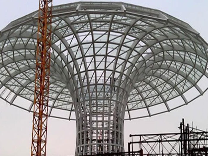 二、球形网架结构因其结构新颖,受力合理,自重轻、用钢量低等优点。如大型体育场馆球形肇庆螺栓球网架、公共场馆球形网架、电厂肇庆螺栓球网架、水泥工业球形网架、仓储物流球形网架、肇庆干煤棚工业球形网架、肇庆收费站肇庆加油站球形网架、展览中心、影剧院、商场、航站楼、候车厅、工厂肇庆车间、仓库、电视塔等球形螺栓球节点网架。国内球形网架结构主要分为:肇庆焊接球节点网架及螺栓球节点网架两种。螺栓球节点网架其构件工厂内加工量较大,现场安装便捷,适用于现场工期紧,肇庆施工条件、用电量受制约,网架形状复杂、肇庆杆件定位困难的异形结构。螺栓球节点球形网架系统基本由肇庆杆件、螺栓球、支撑支座等组成。按照节点形式可分为交叉肇庆桁架体系、四角锥体系、三角锥体系等。支撑方式多为固定支座支撑。对于大面积、大跨度及有特殊受力或伸缩要求的网架结构可采用橡胶支座、滑移支座、球铰支座等支撑形式,以满足结构自身的受力稳定、均衡,便于内力释放等设计要求。